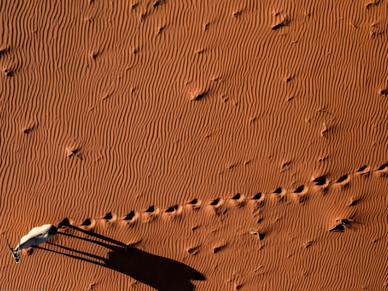 This amazing image of a Gemsbok Oryx ambling through the Namibian desert was taken by Martin Harvey. The dark footsteps of the oryx contrast sharply with the red sand dunes of Namibia, which are a well-known feature of the country’s hot desert regions. A Potensic D68, a drone that performs well in hot weather, could have been used to take this picture.