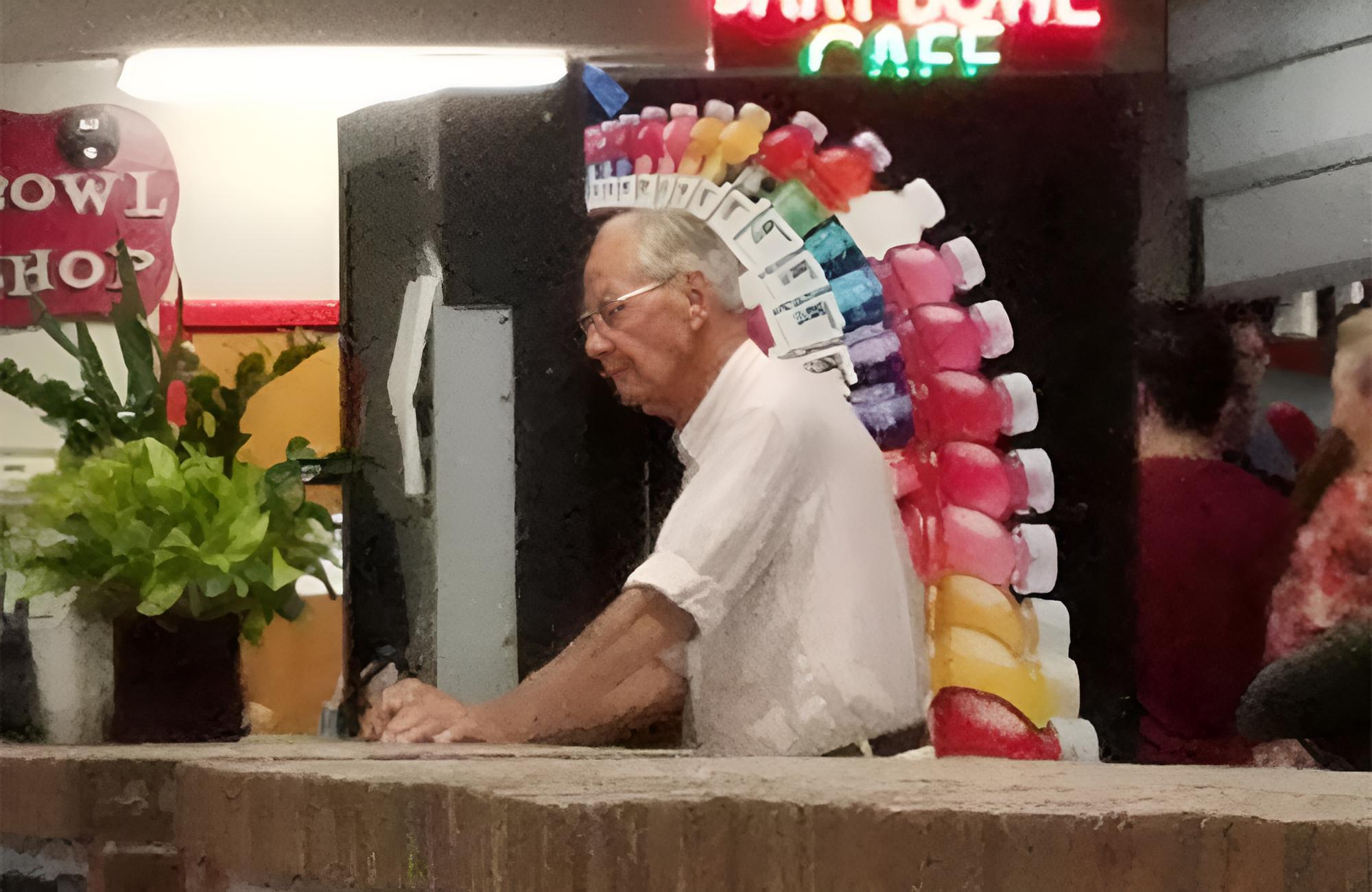 These refrigerators can often also offer the bonus of becoming the perfect background to an individual’s photo – such as this one where the old man seemingly looks like a tribal chief wearing a long headdress made out of these drink bottles. But if it helps in marketing the product, who could complain?