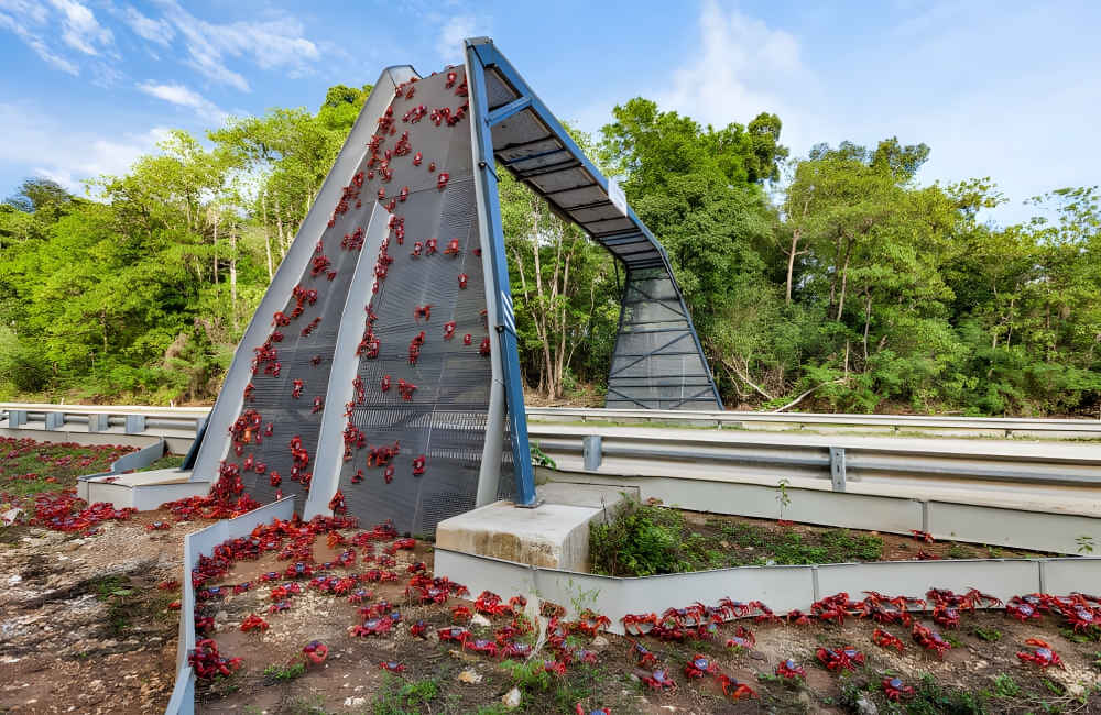 The locals who live on Christmas Island and the Cocos Islands decided to give the crabs a hand. Constructed on the island are crab bridges and tunnels, which help the crabs make the treacherous journey across the island more safely. Millions of red crabs use these bridges, which public notice boards ban humans from using.