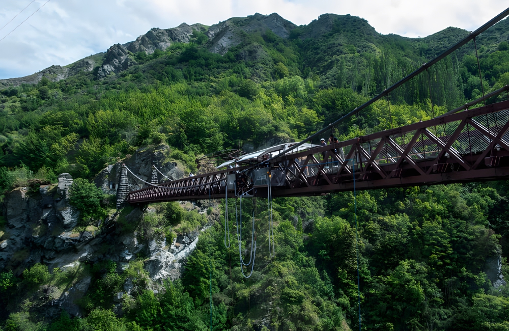 The Kawarau Gorge Suspension Bridge was the first-ever commercial bungee-jumping site in the world. It crosses the Kawarau River, which is located in Otago, New Zealand. The bridge is used by the AJ Hackett Bungy Company. It forms part of Queenstown Trail, a popular New Zealand trail that lets bikers and pedestrians pass across the Kawarau River.