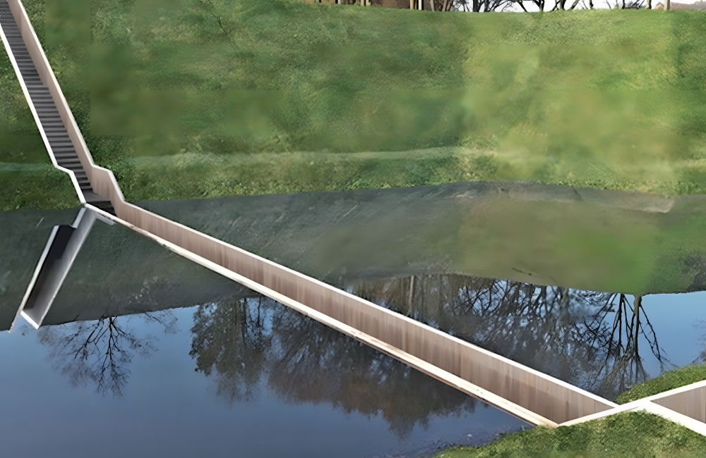The Moses Bridge is partially-submerged. RO&AD Architecten, the firm behind the Bridge, built it in 2010. It divides the moat in two. The clearing of Fort de Roovere was met by many protesters, who felt that there wasn’t enough architectural research done on the many battles in the area.