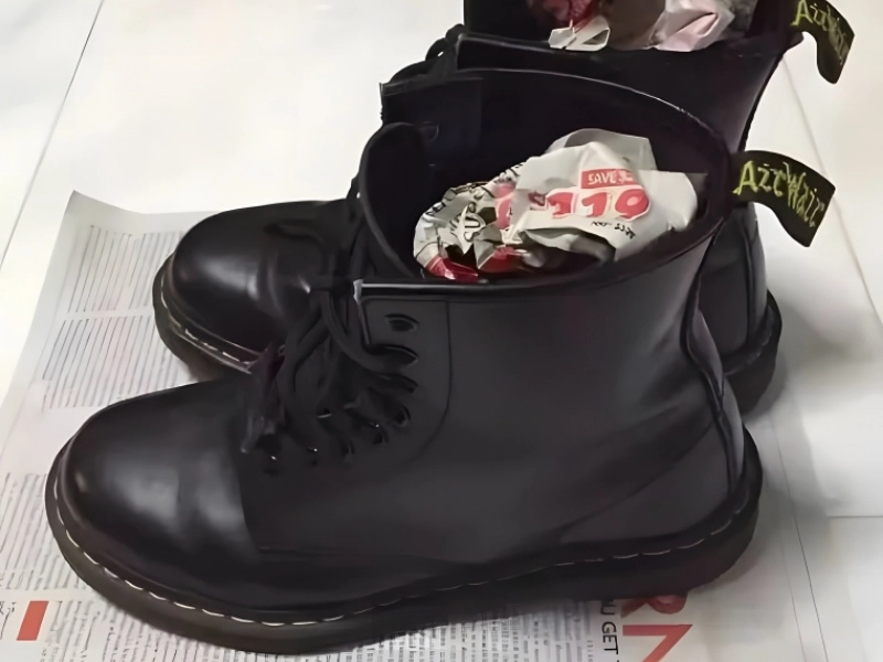 If your shoes are composed of sensitive materials, such as suede or leather, dry them especially carefully. Steer clear of direct heat sources like radiators or hairdryers, which could cause the material to deform or shatter. Rather, let the shoes air dry naturally; hasten the process using paper towels or a newspaper.