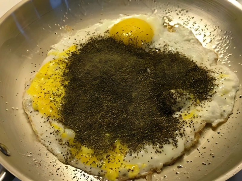 It’s really ideal to season the eggs before putting them in the pan; however, it’s not quite apparent how that would have avoided this. This picture should teach you to always keep your spice jars properly shut.