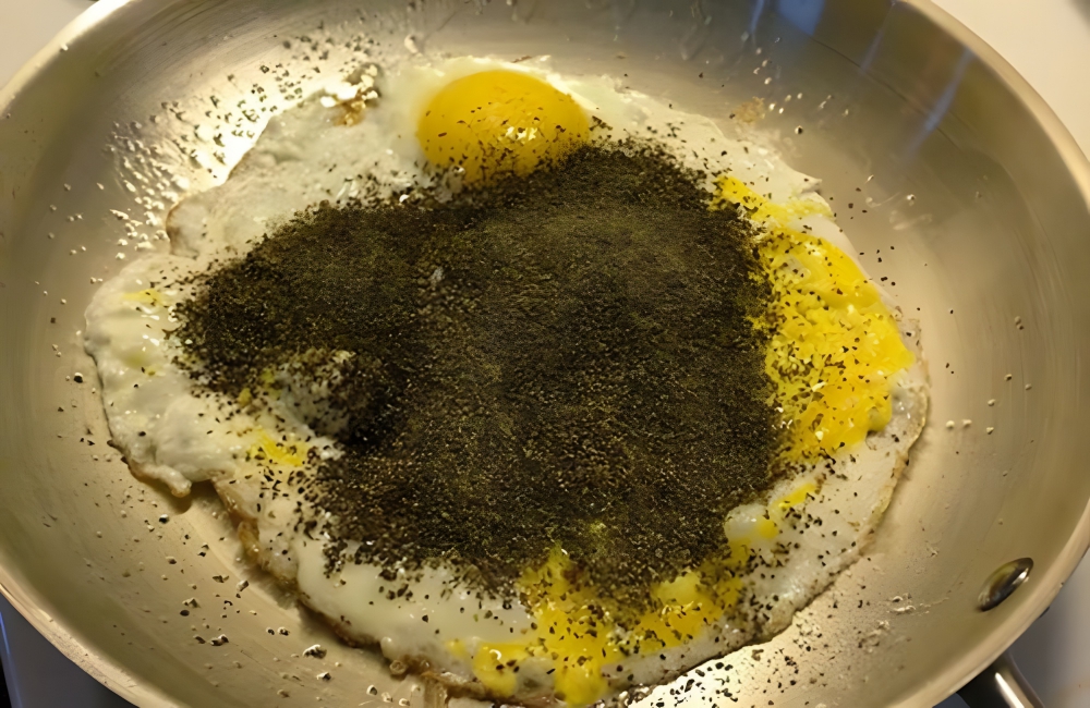 Well, let’s hope this person loves seasoning, as they’re going to get a lot of it. When seasoning eggs, the lid came off of the container and created this intense mess. This person is going to have to find a clever solution to return their fried egg to normal.