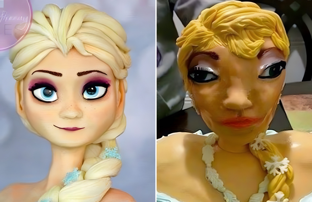 Still, making a cake based on a character, however popular that character may be, is always a tricky task. This person tried to make Elsa from Frozen, but came up with someone who looked totally opposite the Snow Queen.