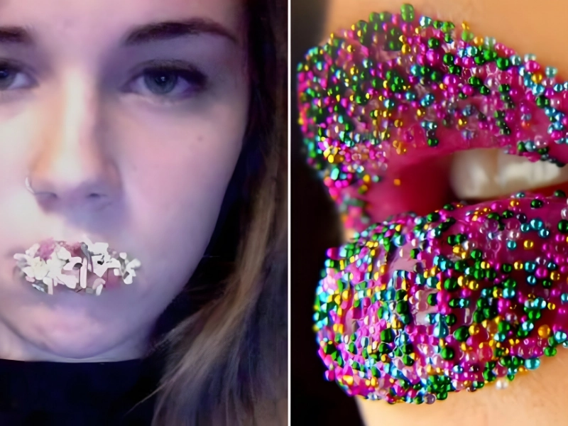 Amazing makeup styles have taken the internet by storm ever since YouTube and Instagram gained popularity. Many MUAs enthrall their admirers with extravagant designs, such as this meticulously realistic sprinkle lip made with a ton of tiny beads.