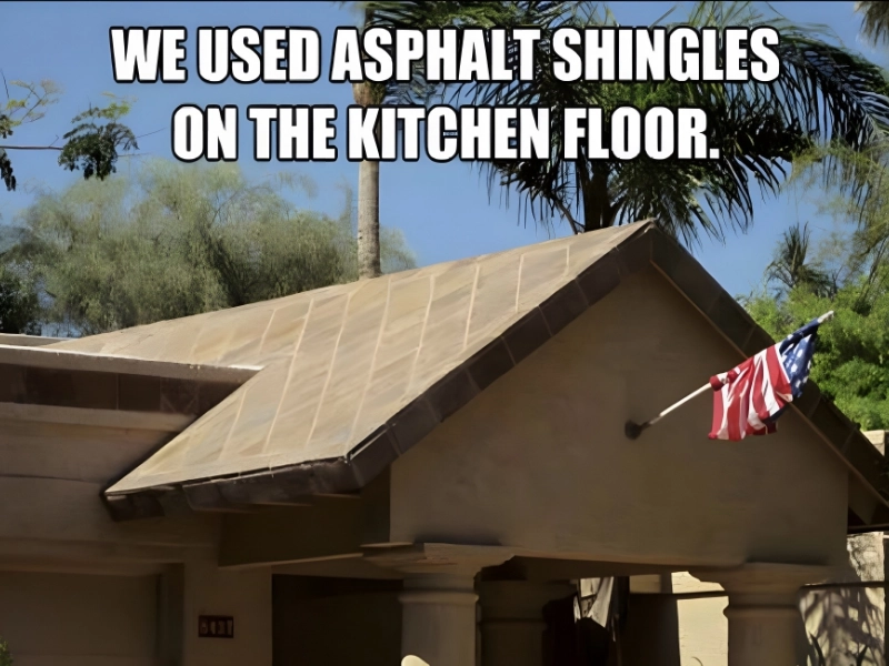 Someone chose to acquire some vinyl kitchen flooring from Home Depot rather than going all out and purchasing real roofing tiles. Even if it won’t endure longer than a scorching minute, you have to respect how clever it is.
