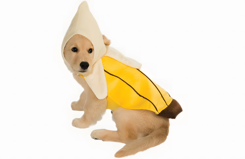 The Rubie’s Store banana costumes come in four sizes, ranging from small to extra-large. The 100% polyester printed dog shirt comes with a matching headpiece, complete with holes for your dog’s ears. The adorable result will be Instagram-worthy and doubly cute if you have a puppy like this one.