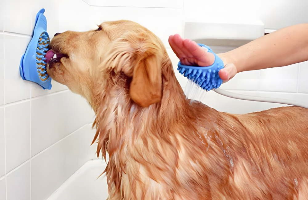 What It Does: Lets your dog lick peanut butter while you give it a bath