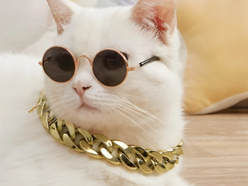 This two-piece, $4.50 combination includes sunglasses and a chain with a gold imitation Cuban link design. The glasses and necklace are precisely sized for our feline pals, and they are available in a single size. The cat accessory set has a 4.8/5-star rating on the Shein website from customers who managed to get their cats to let their humans wear the glasses and necklace.