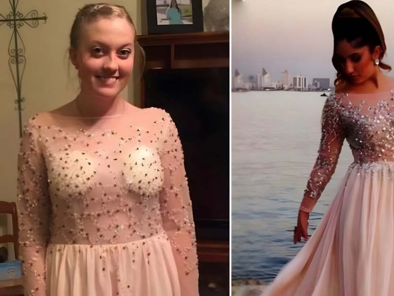 Invest a whole day in it! This can very well be your destiny if you decide to cut corners and purchase a cheap dress from a copycat website. The model appears gorgeous on the left. The bride on the right is not well-represented by her clothing. The two bust padding and the cheap sequins both shout, “Don’t Wear.”