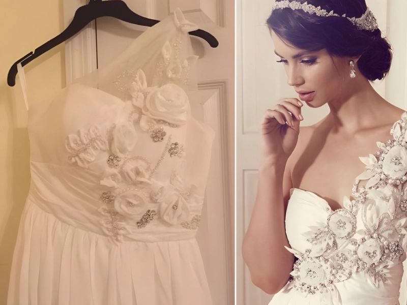 As this picture shows, their dresses are not worth the $150 to $250 that they retail for. The outfit on the left, created by Anna Campbell, is completely different from the one on the right. The appropriate garment appears less like a true masterpiece and more like an inexpensive, gaudy prom dress. Don’t be duped by the price; stay away from websites like this.