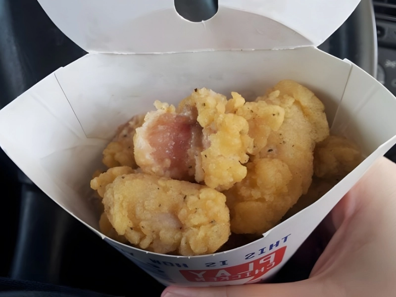 In order to steer clear of this fast food establishment in the future, we wish we knew where it was. Unfortunately, one client discovered that the tasty chicken tenders he had ordered—which had an enticingly crispy exterior—were actually uncooked inside when he took a bite. Uncooked chicken is nothing to joke around with.