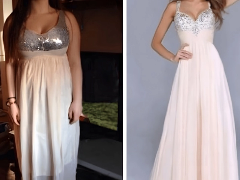 Figure-hugging and meticulously crafted, this stunning Canacci dress retails for approximately $400. Therefore, it’s likely that one bidder believed they would receive something that at least resembled the item when they saw the photo on eBay. From the sequin top to the see-through bottom, how mistaken they were.