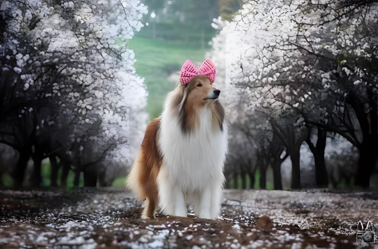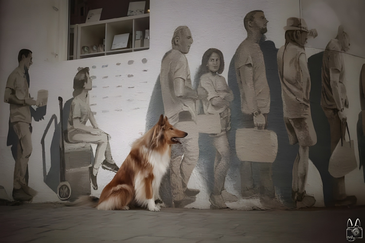 This beautiful Rough Collie fits perfectly in that wall painting.