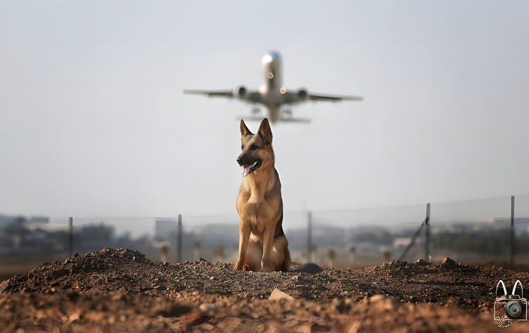 Most dogs would probably run away when hearing a plane taking off so close to them. This dog, however, is particularly brave and trained. Her name is Magic, and she managed to stand still while the plane took off right behind her, creating this magical image!