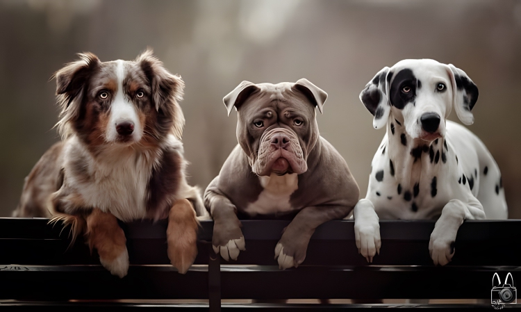 A group of Dalmatian, Olde English Bulldogge, and an Australian Shepperd is quite rare!