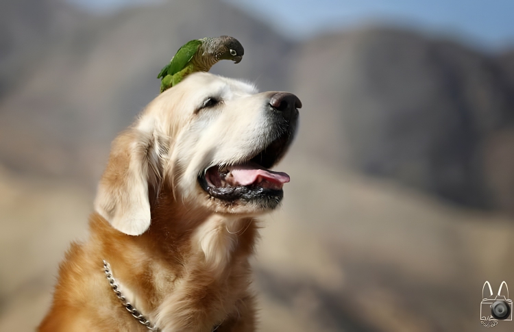 This Golden Retriever seems so peaceful, no wonder this bird picked him as her resting place.