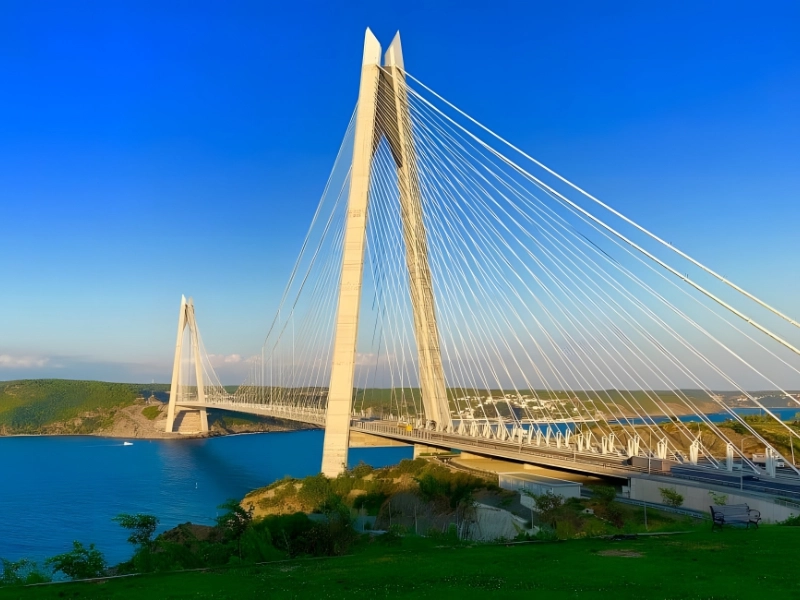 Spanning the Bosphorus strait in Istanbul, the Yavuz Sultan Selim Bridge, completed in 2016 at a cost of $3 billion, is more than a bridge; it’s a marvel of engineering and a new symbol of Turkey’s storied capital. Known as the “Third Bosphorus Bridge,” it stands out with a main span of 1,408 meters, making it one of the longest of its type in the world.