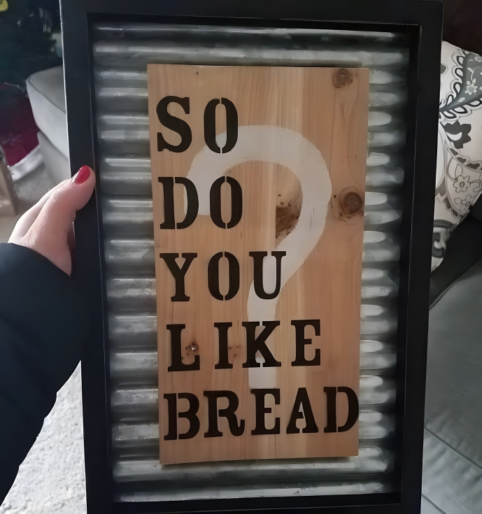 They actually ended up dating and falling in love. So, a year later, he gifted her this sign for Christmas that reads, “So, do you like bread?” Hilarious!