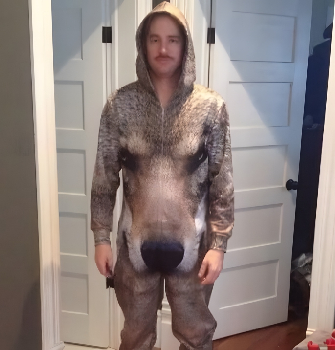 This genius onesie was a fantastic gift from this guy’s wife. If someone gave us this for the holidays, we’d crack up as soon as we put it on. However, the recipient in this photo doesn’t seem too amused. On a separate note, we can’t help but think that this wolfie onesie should come with a warning that says, “Do not touch the nose.” Otherwise, it could end very awkwardly for all parties involved if someone tries to get the wolf to sniff them.