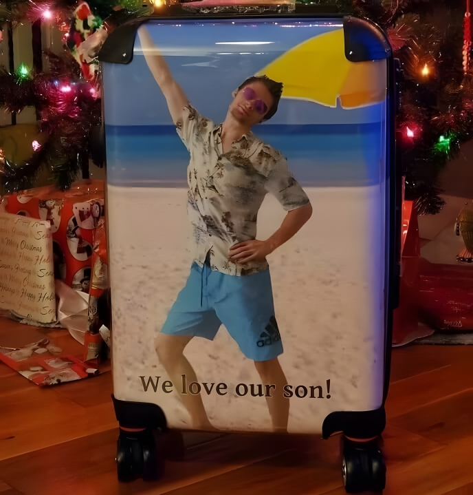 Are your folks about to embark on a well-deserved retirement cruise? If so, you could take a leaf out of this son’s book and send them off with a gentle reminder of your devotion – as their favorite child. To nail this hilarious gag gift, head to your closet and find your most hideous shirt. Then, photoshop yourself onto a desirable landscape – or wherever they’re heading off to, and voila! You’ve got the perfect photo to plaster onto a custom-made suitcase.