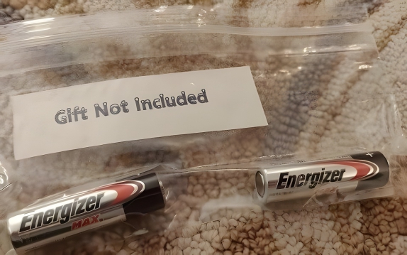 This gift made us laugh out loud. From the word-art label to the sealable food bag, this gift is for someone with a dry sense of humor. How many times have you bought a gift for someone, especially children’s electronic toys – only to take a closer look at the packaging to find the label “batteries not included.” It’s frustrating that the recipient can’t use their gift immediately!