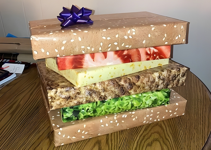 This ingenious gift certainly has both creativity and cravings at its heart. Why not delight the burger-lover in your life by going the extra mile? Skip the McDonald’s queue and instead wrap up some surprise gifts with the necessary food-themed wrapping paper, and stack your gifts to emulate a burger. Voila, you now have a set of presents that’s bound to bring a chuckle to your loved one – and maybe some mouth-watering too!