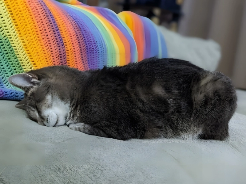 Finding the ideal snooze place is the only thing better. You are tired and too busy turning around to be able to fall asleep. Then all of a sudden you just fall and discover the ideal position. You are quite comfy in your posture and fast asleep. The ideal model of total comfort in a dozing posture on the sofa is this cat.