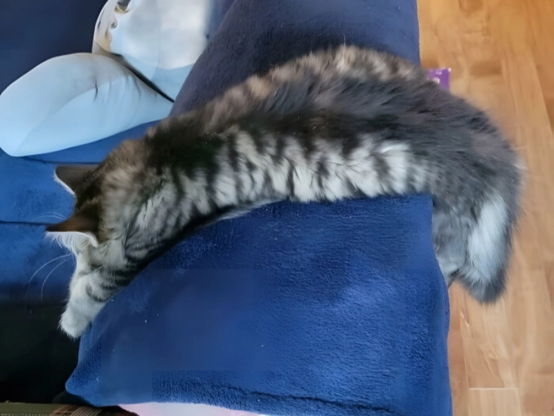 Have you ever come upon a deflated cat? The response to that is most likely no, unless it was a blow-up cat—hardly common. But as has already been mentioned, some cats can become liquid at specific moments; this cat seems to be one of them. Laying himself down over the sofa, he has deflated and became liquid simultaneously.