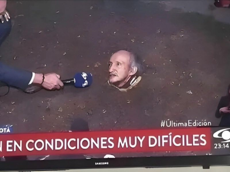 This dramatic picture from Colombia, together with what might be the most subdued news description for the year, makes a strong statement about protest and living circumstances. The picture shows a man who buried himself alive in protest against his living circumstances; this fact makes the accompanying caption “They live in very difficult conditions” seem almost humorously inadequate. Seeing someone actually buried, probably with some breathing equipment, immediately and viscerally generates desperation that goes beyond the need for specific explanation. Although risky, this kind of aggressive protest does a far greater job than any written account of the seriousness of the problem. The simple caption and the dramatic graphic help to underline the sometimes ridiculous gap between news media presentation and the weight of the events they cover. Though the picture begs major issues regarding the extent people must go to get their voices heard in current society, this particular protest technique, extreme as it is, succeeded in bringing attention to the situation of its subject.