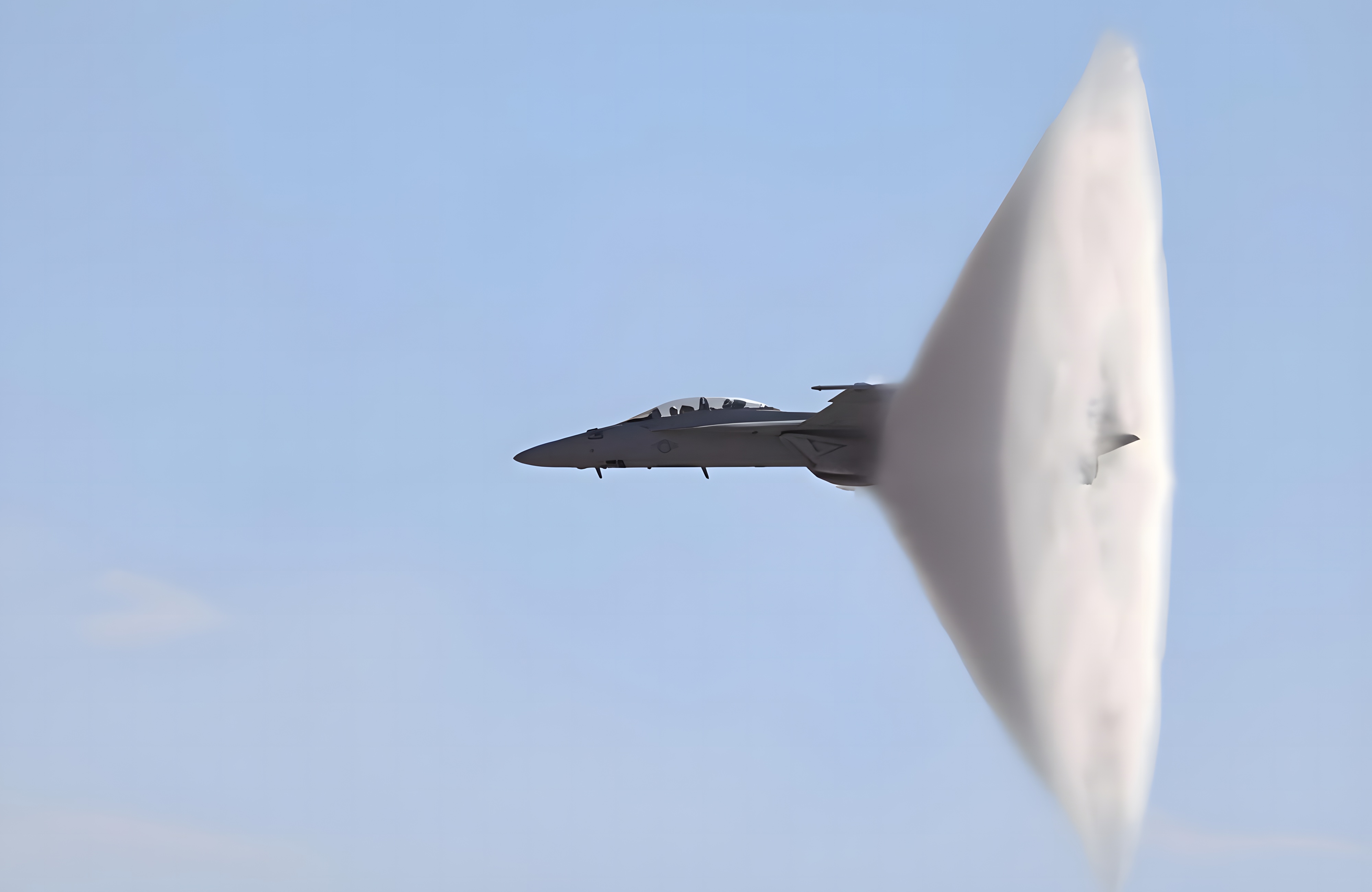 This photo brilliantly captures a supersonic fighter jet breaking the sound barrier, and the photograph makes the jet look as though it has come to Earth from another dimension. Breaking the sound barrier has been a thing since the 1940s, when a pilot named Chuck Yeager got his Bell X-1 up to 767 miles per hour, hitting Mach 1. That feat wowed people at the time, as that had never been done before.