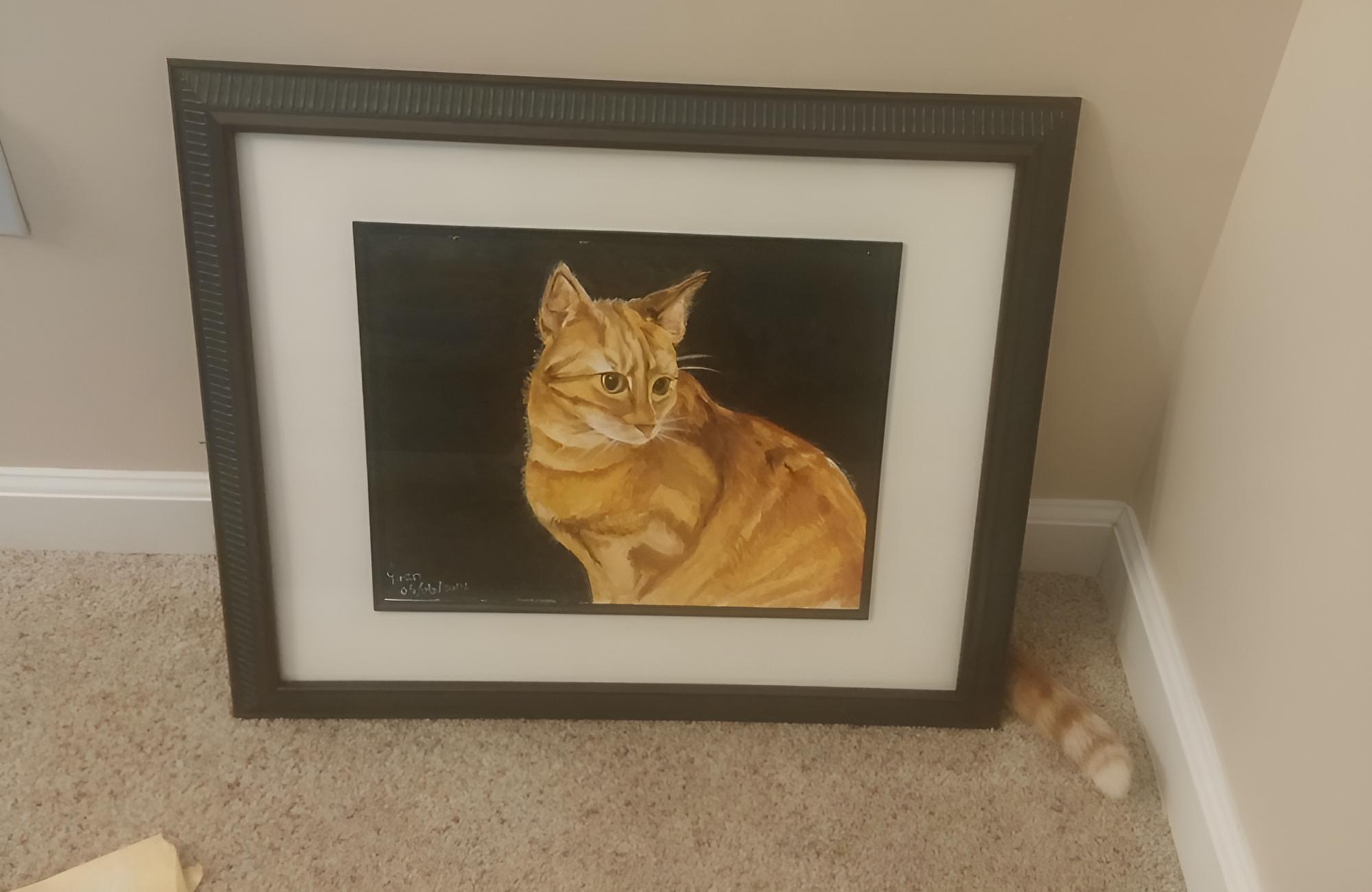 Talk about life imitating art. If you don’t look closely enough at this photo, you’ll miss the joke. Our furry feline friends have a knack for sneaking behind things, and this cat proves that he is no different, having crept behind a painting of himself. Only his little (real) tail is sticking out to give away his location.