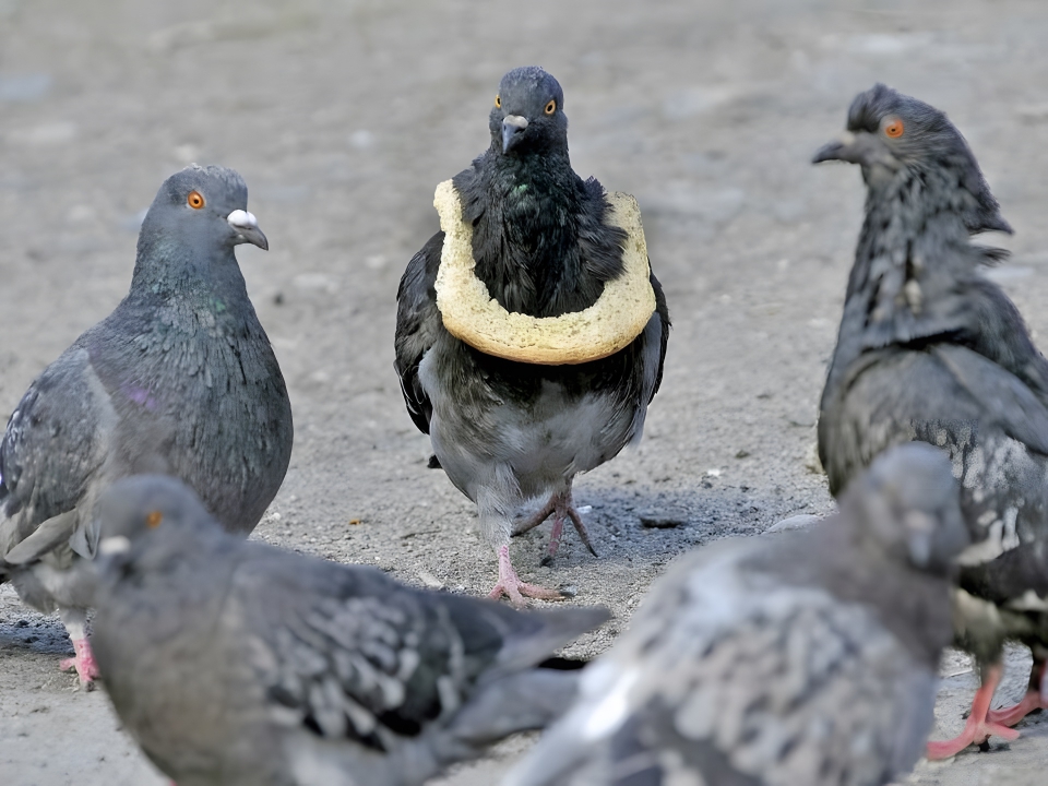 The head pigeon is now immediately recognizable.