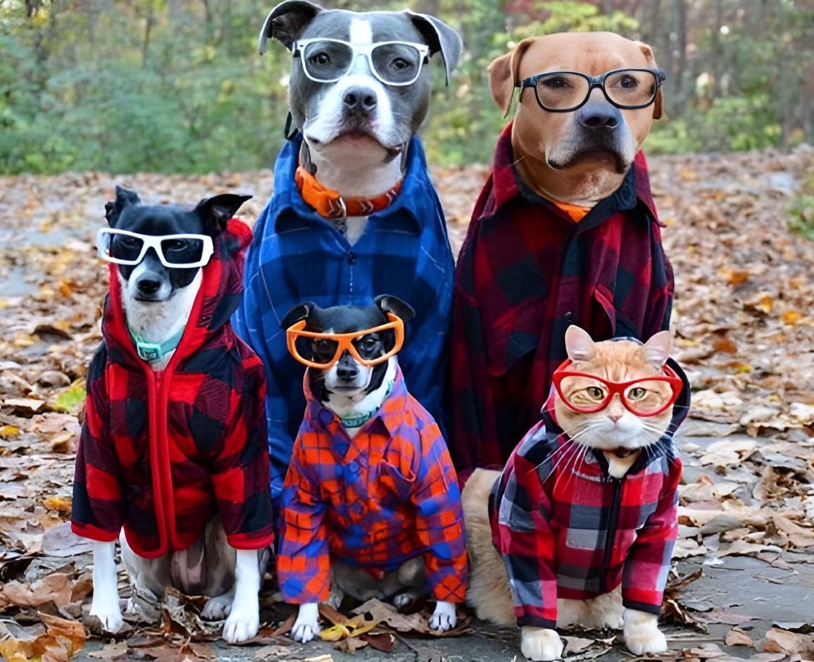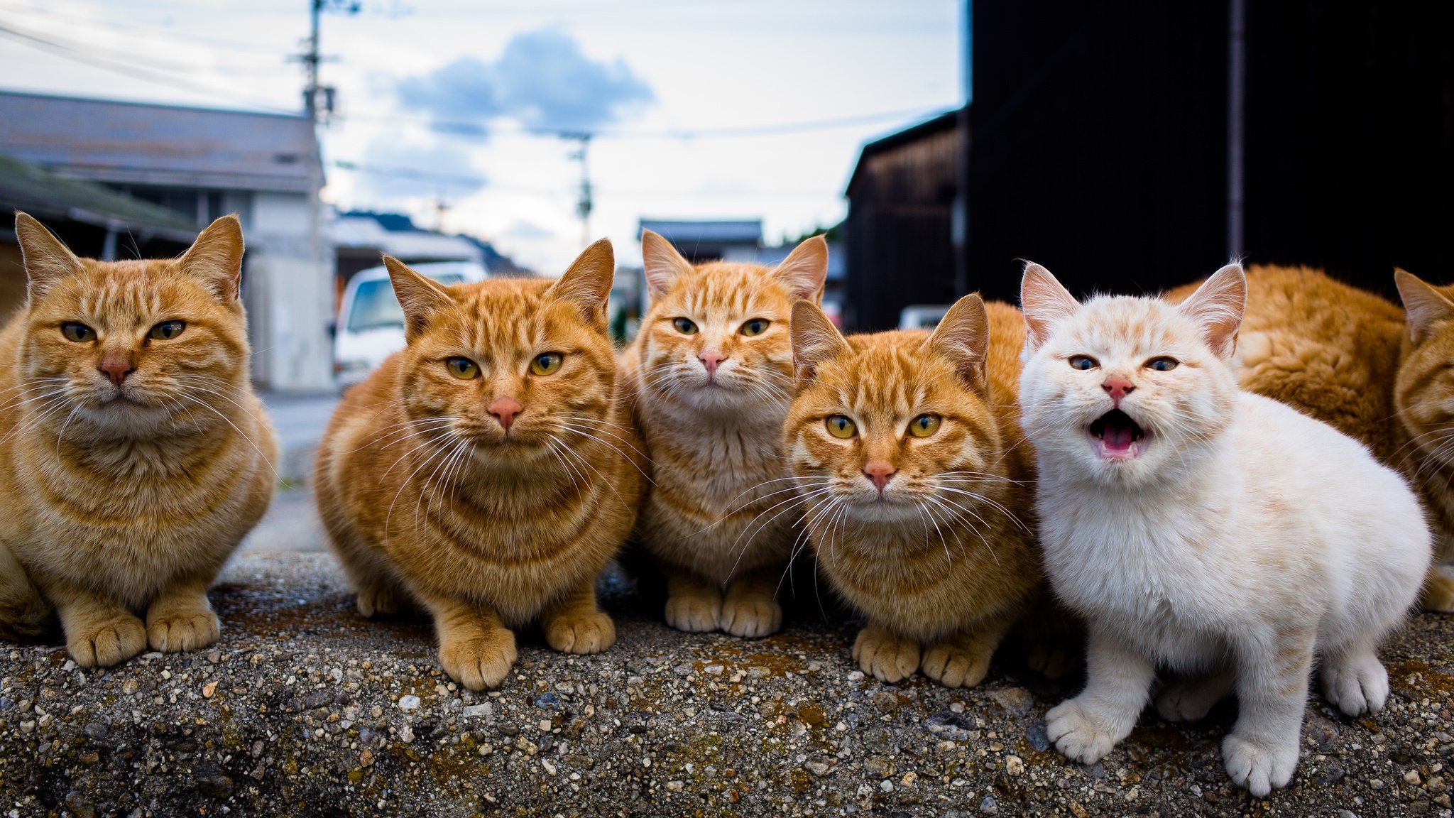 A gang of scientists with a redhead cat in the lead.