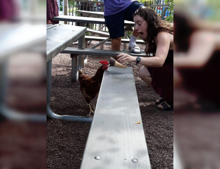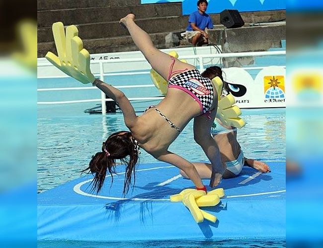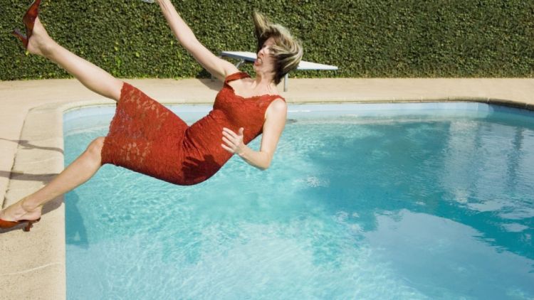 Judging by her expression, she didn’t seem too eager to swim in the pool.