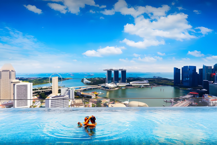 Located atop the Marina Bay Sands Resort, you should enjoy a swim on top of the iconic infinity pool and look at the bustling city life.