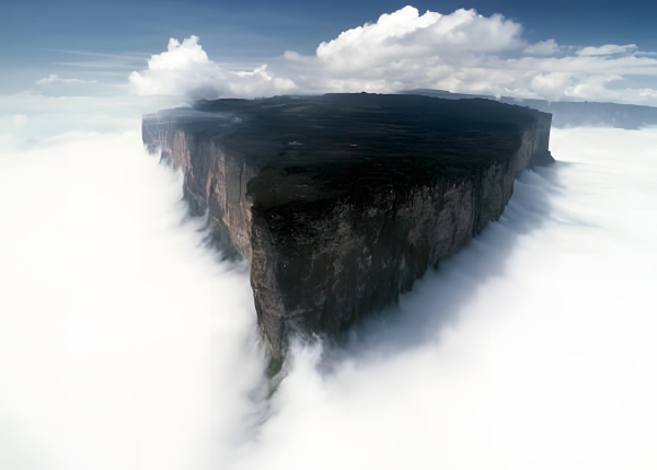 Mount Roraima, a flat-topped mountain straddling the borders of Venezuela, Brazil, and Guyana, is a geological wonder that truly embodies the mystique and grandeur of our planet’s most extraordinary landscapes. This ancient tepui, or table-top mountain, rises dramatically from the surrounding rainforest, its sheer cliffs ascending to a height of approximately 2,810 meters (9,220 feet) above sea level. The mountain’s flat summit, shrouded in mist and clouds, covers an area of about 31 square kilometers (12 square miles), creating a world unto itself that seems to float above the clouds. This otherworldly appearance has inspired countless legends, scientific expeditions, and even served as the inspiration for Sir Arthur Conan Doyle’s famous novel “The Lost World.” The comparison to a mystical place from another planet is apt, as the unique ecosystem atop Mount Roraima has evolved in relative isolation for millions of years, resulting in a landscape that feels alien and enchanting in equal measure.