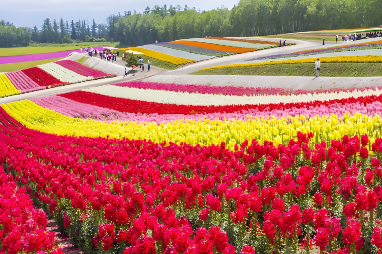 While lavender is undoubtedly the star attraction, Farm Tomita offers a diverse array of floral displays that showcase the rich variety of flowers that thrive in Hokkaido’s climate. Visitors can wander through fields of vibrant red poppies, golden sunflowers, pink cosmos, and multicolored tulips, each creating its own unique atmosphere and sensory experience. The Sakiwai Field, with its rainbow-like stripes of different flowers, is particularly popular for its Instagram-worthy views. The farm’s design incorporates Japanese gardening principles, creating harmonious landscapes that change throughout the growing season, ensuring that there is always something new and beautiful to discover. This ever-changing tapestry of colors and textures demonstrates the incredible diversity of plant life that can be cultivated in Japan’s northernmost island, making Farm Tomita a living testament to the country’s horticultural expertise and deep appreciation for natural beauty.