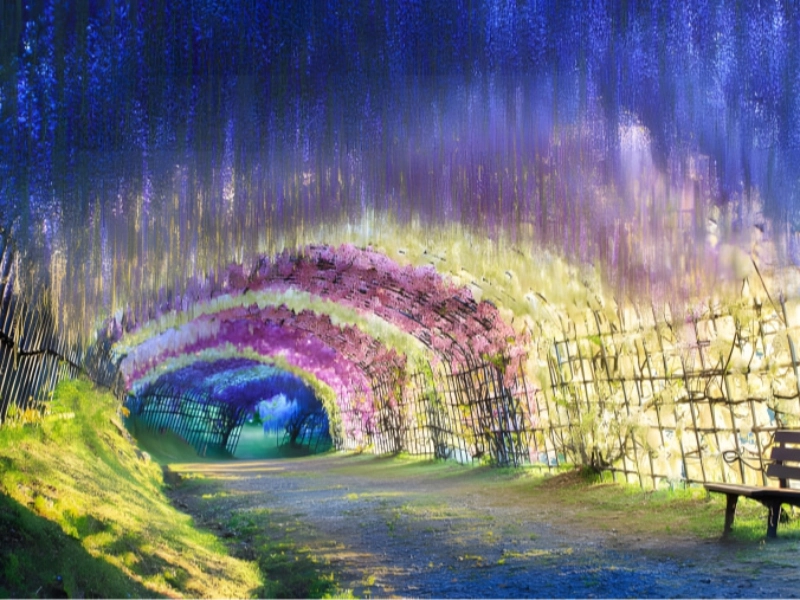 In fact, the Wisteria Tunnel can captivate guests in a few short seconds upon arrival. You are immediately surrounded by a canopy of blossoms as soon as you enter the tunnel; their delicious scent permeates the air and produces a sedative sensory experience. The wisteria blooms’ delicate petals seem to dance in the soft breeze, producing a live, breathing work of beauty that shifts with every second. With the arching flowers creating a sense of inclosure and intimacy both romantic and amazing, the design of the tunnel lets guests really enjoy the beauty of the wisteria. Deep purple to gentle lavender and pure white, the several tones of the wisteria blossoms form a harmonic colour palette that is both calming and energising. Visitors often spend hours meandering about the tunnel in awe of the exquisite intricacies of the blooms and savour the peaceful beauty of their surrounds as this natural show is so mesmerising.