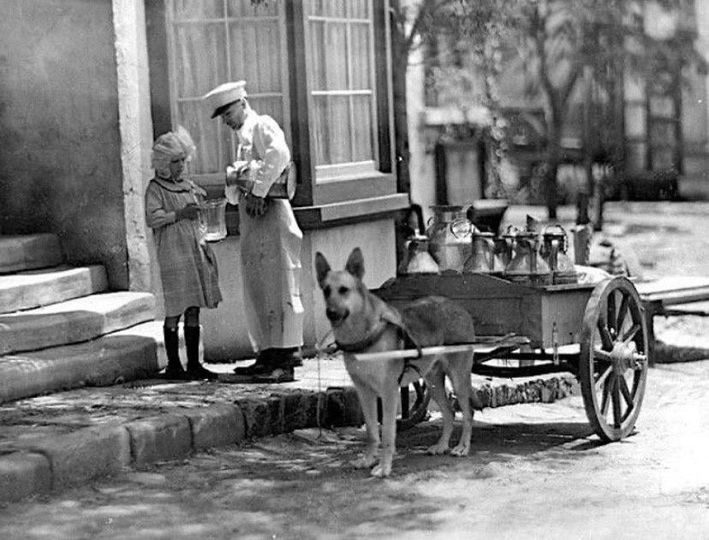 Milk delivery in England, early 20th century.