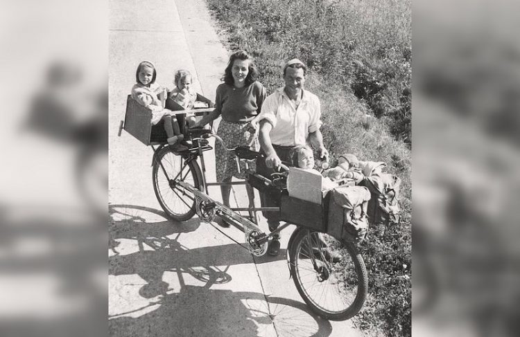 Swedish family on a bike ride, 1949.