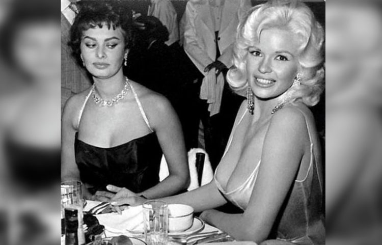 Sophia Loren’s unforgettable look on Jane Mansfield’s cleavage, 1957.