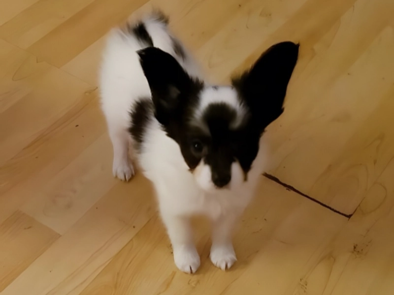 4. A Puppy With A Bat Pattern On Its Head