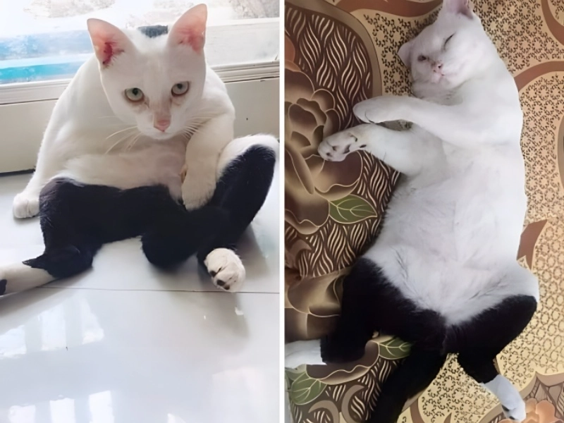 This cat’s distinctive fur pattern produces an obvious illusion of wearing somewhat sagging trousers in a wonderful show of nature’s whimsiness. Unlike the vertical or random patterns often found in cats, this unique horizontal marking clearly divides the upper from lower body, producing what looks to be a natural pair of trousers. It’s especially funny when the cat moves around as the marking’s exact placement and proportion exactly reflects how clothes looks. The pattern’s placement along the cat’s rear section accentuates the humour of the scenario and produces an adorable and funny impact that would be impossible to overlook. Online users’ recommendation that the cat should be called “Pants” captures the ideal naming possibility given by such a distinctive design. This rare marking shows how occasionally random genetic changes can produce almost well planned patterns that result in a unique pet with built-in wardrobe.