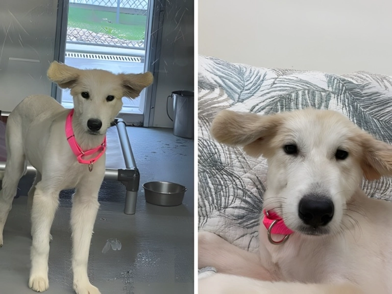 This little rescue puppy stands out in the most beautiful manner because of a really unusual genetic characteristic. Her remarkable ears, which keep a constant upright and outward posture, really resemble the trademark bunches of the legendary Pippi Longstocking. This is her natural, calm condition, hence this quality is more interesting since it is not a fleeting reaction of attention or excitement. It is a lost chance she was not called after the beloved heroine as the resemblance to Pippi Longstocking appears nearly inevitable. Her already great appeal is enhanced by her always astonished and happy expression derived from her continually perked and outward-pointing ears. Her uncommon genetic feature has gifted her with a perpetually playful look that distinguishes her from other dogs and makes her rather lovely right away.