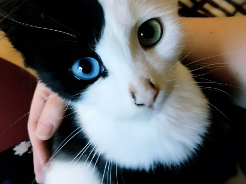 Pixel is a magnificent illustration of the artistic ability of nature since she exhibits a very rare combination of hereditary traits that distinguishes her absolutely. Her heterochromia, a rare genetic disorder that has bestowed her with two differently coloured eyes—one a mesmerising ocean blue and the other a deep, dark forest green—is the most remarkable feature of this enchanted kitten. Her bi-colored coat, split between pure black and immaculate white, accentuates her remarkable look and provides a great canvas for her mismatched eyes. Pixel is a real genetic lottery winner since heterochromia is a very rare occurrence in the animal kingdom combined with other traits. Her varying coloured eyes and split-colored fur produce such a striking look that it’s practically impossible not to be pulled into her sight. It’s difficult to say which side is more appealing as her unusual features have produced a nearly exact balanced face that seems almost purposefully formed.