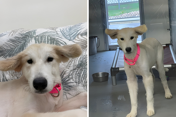 Is this dog standing over a fan? Is it windy? Is she half dog and half airplane? No, no, and no. This rescue dog has the rarest of ears. You would think that she is simply raising her ears due to excitement, but in fact, that is not the case. This is what she looks like even when she is relaxed, this is just her face! All the time. What a cutie pie.