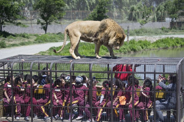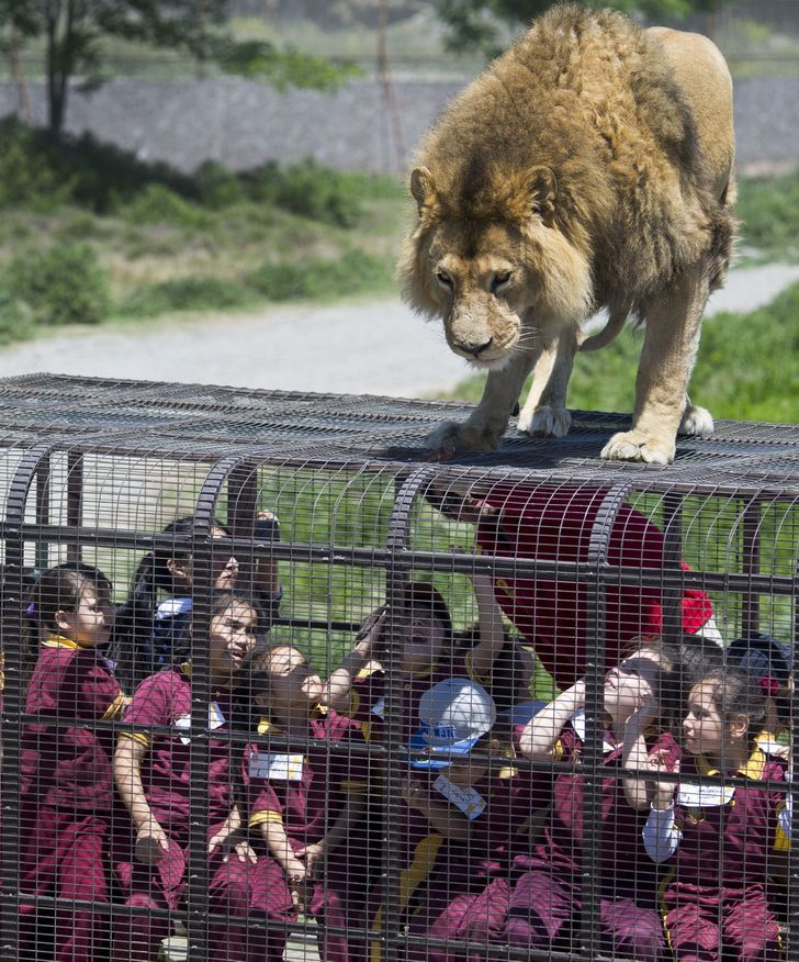 Der Zweck dieses bizarren Zoos besteht darin, den Menschen die Möglichkeit zu geben, Tiere in ihrer natürlichen Umgebung zu beobachten. Jeder Besucher kann in einem stabilen Metallkäfig mit dem Bus durch die Region fahren und ist so sicher vor den Löwen geschützt.