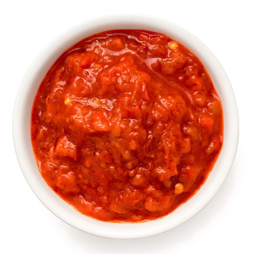 When using ajvar in place of tomato sauce, apply the 1:2 ratio. For example, use 1⁄2 cup of ajvar to replace 1 cup of tomato sauce. For a thinner consistency, mix 1⁄2 cup of Ajvar with 1⁄2 cup of water or vegetable broth to replace 1 cup of tomato sauce.